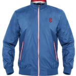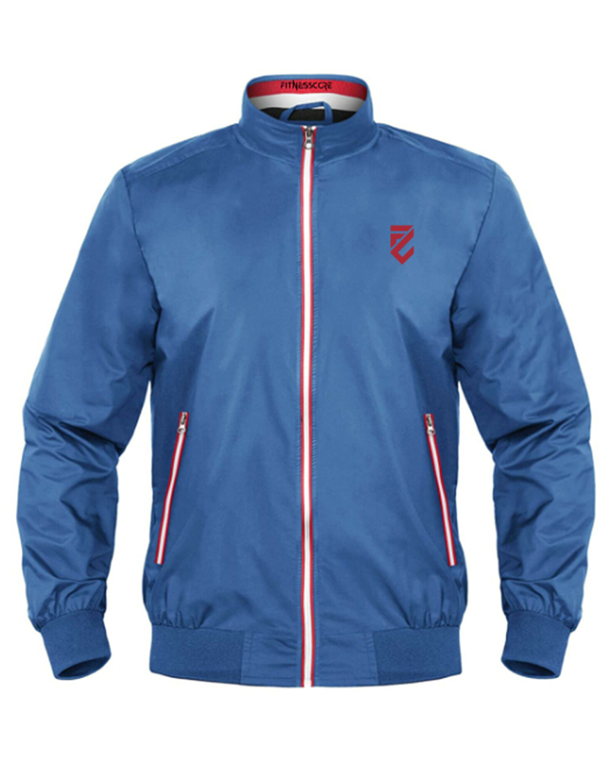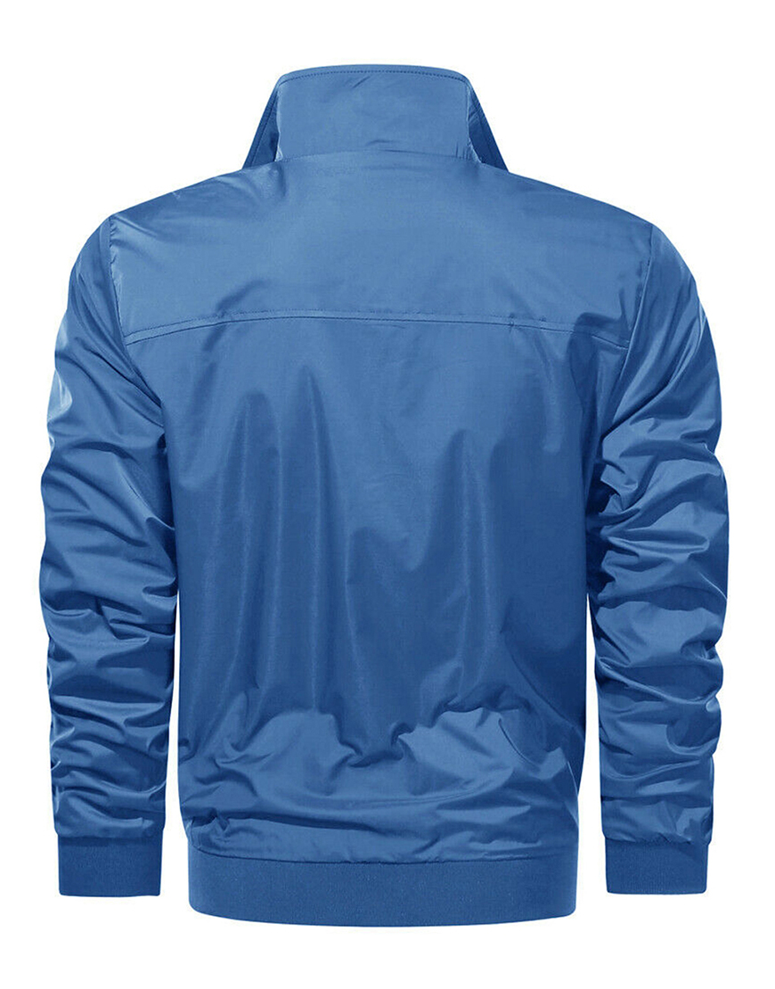 Ribbed collared jacket, two side pockets, YKK snap dome to close, internal patch pocket.