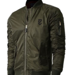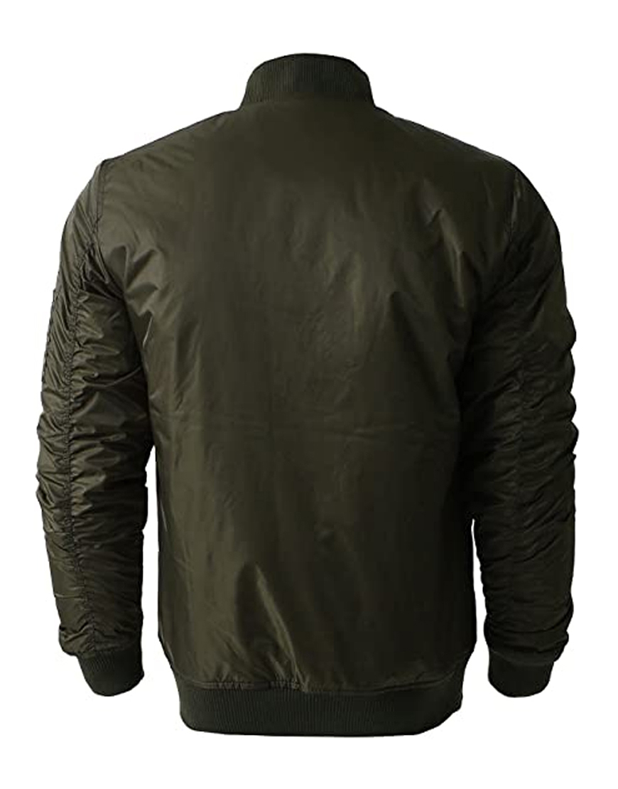 Ribbed collared jacket, two side pockets, YKK snap dome to close, internal patch pocket.