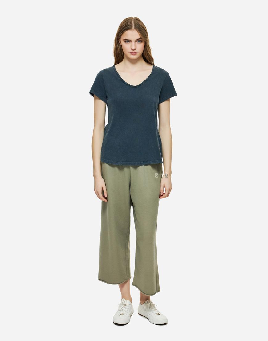 Cropped sweatpants with raw edge details that give them a unique elegance. The minimalist design exudes subtle sophistication,making them the perfect addition to your wardrobe for effortless and comfortable looks.